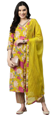 Anni Designer Women'S Cotton Blend Straight Printed Kurta With Pant & Dupatta (Ganita Mustard_5Xl_Mustard_Xxxxx-Large),Mustard,5XL,Rayon Blend,Regular,