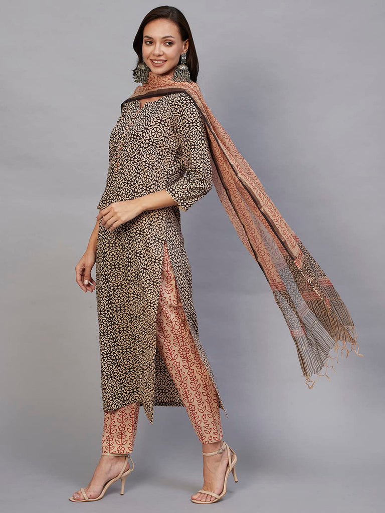 Descriptionanni Designer Women'S Cotton Blend Staright Printed Kurta With Pant & Dupatta (Kuntu Green_Xxl_Green_Xx-Large)