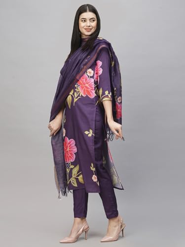 Descriptionanni Designer Women'S Cotton Blend Straight Printed Kurta With Pant & Dupatta (Kalai Violet_3Xl_Purple_Xxx-Large)