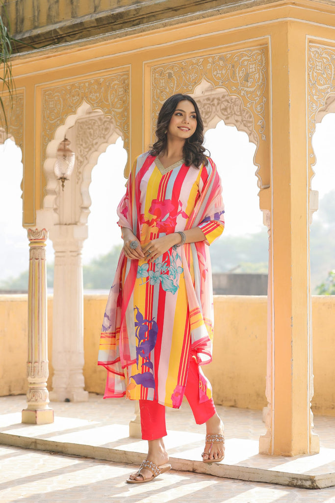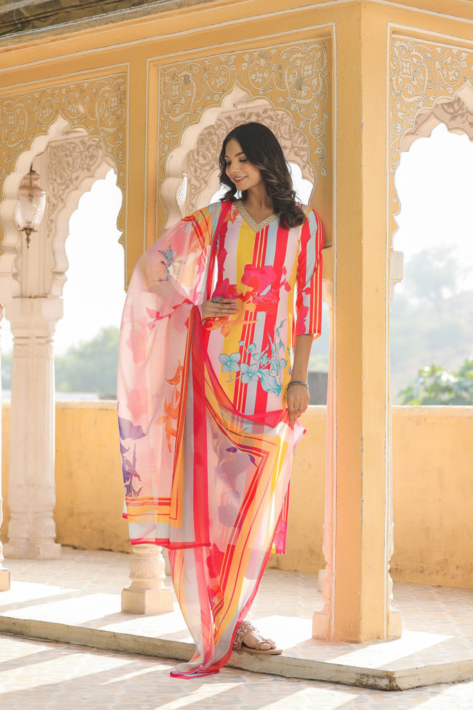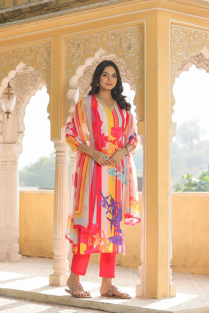 Anni Designer Women'S Cotton Blend Straight Printed Kurta With Pant & Dupatta (Kapila Red-Nw_S_Red_Small)