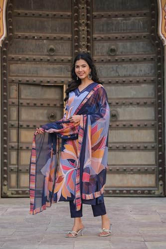 Descriptionanni Designer Women'S Cotton Blend Straight Printed Kurta With Pant & Dupatta (Khissu Navy Blue_5Xl_Navy Blue_Xxxxx-Large)