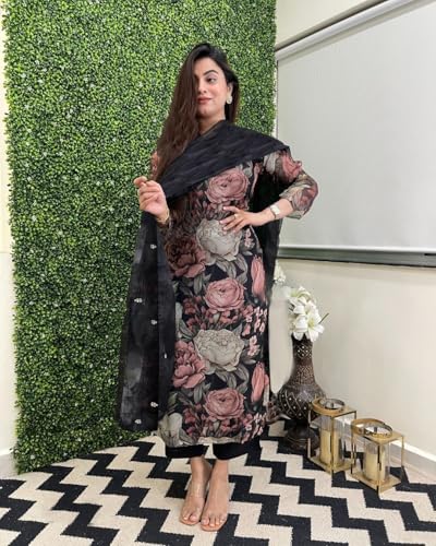 Descriptionanni Designer Women'S Cotton Blend Straight Printed Kurta With Pant & Dupatta (Poona Black_S_Black_Small)
