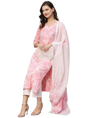 Anni Designer Women'S Cotton Blend Straight Printed Kurta With Pant & Dupatta (Prem Pink_Xl_Pink_X-Large),Pink,XL,Cotton Blend,Regular,Kurta, Pant & Dupatta