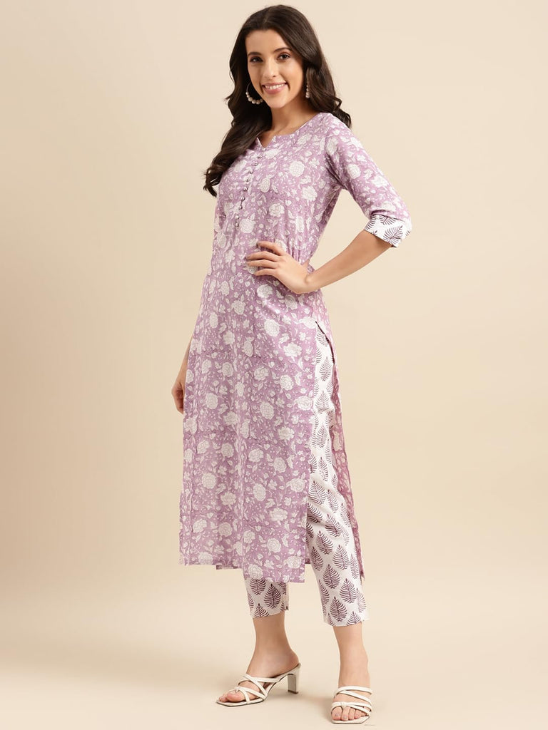 Anni Designer Women'S Cotton Blend Straight Printed Kurta With Pant & Dupatta (Ratnapriya Purple-Nwg_Xl_Purple_X-Large)