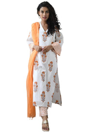 Descriptionanni Designer Women'S Cotton Blend Straight Printed Kurta With Pant & Dupatta (Saganeri-Orange_S_Orange_Small)
