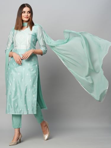 Descriptionanni Designer Women'S Cotton Blend Straight Printed Kurta With Pant & Dupatta (Sawre Pista_M_Pista_Medium)