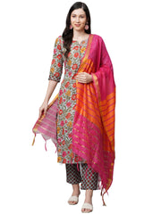 Yes, the ANNI DESIGNER Women's Cotton Blend Straight Printed Kurta Set includes a matching printed dupatta along with the kurta and pant.