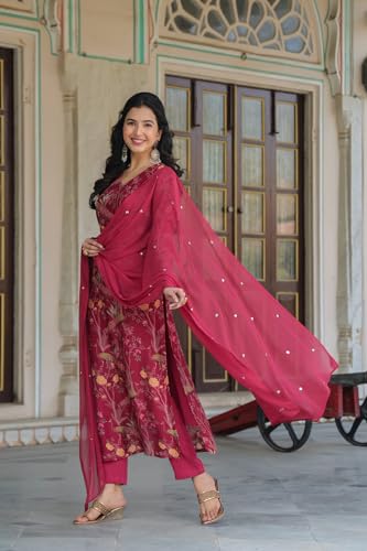 Anni Designer Women'S Cotton Blend Straight Printed Kurta With Pant & Dupatta (Shoko Red_Xl_Red_X-Large),Red,XL,Cotton Blend,SHOKO RED-469,Kurta, Scarf