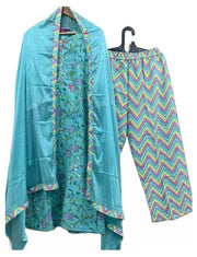 Descriptionanni Designer Women'S Cotton Blend Straight Printed Kurta With Pant & Dupatta (Uttar-Blue & White_Xxl_Dark Blue_Xx-Large)
