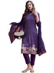 Anni Designer Women'S Cotton Blend Straight Printed Kurta With Pant & Dupatta (Zaklina Purple_M_Purple_Medium)