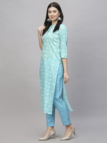 Anni Designer Women'S Cotton Blend Straight Printed Kurta With Pant (Evika Blue-Nw_L_Blue_Large),Blue,L,Cotton Blend,Evika Blue-NW_1406,