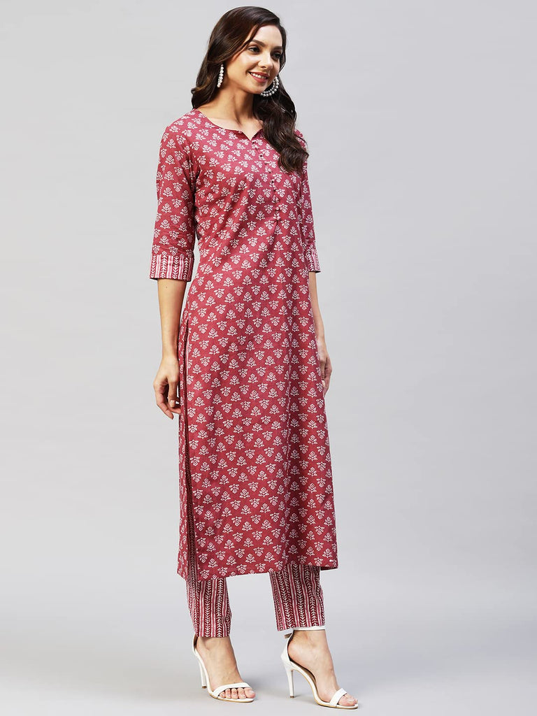 Descriptionanni Designer Women'S Cotton Blend Straight Printed Kurta With Palazzo (Gapati Maroon_4Xl_ Maroon_Xxxx-Large)