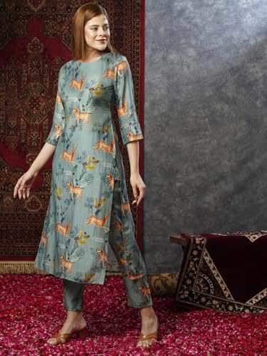 Anni Designer Women'S Cotton Blend Straight Printed Kurta With Pant (Haribala Pista_Xl_Pista_X-Large),Pista,XL,Cotton Blend,Regular,Kurta