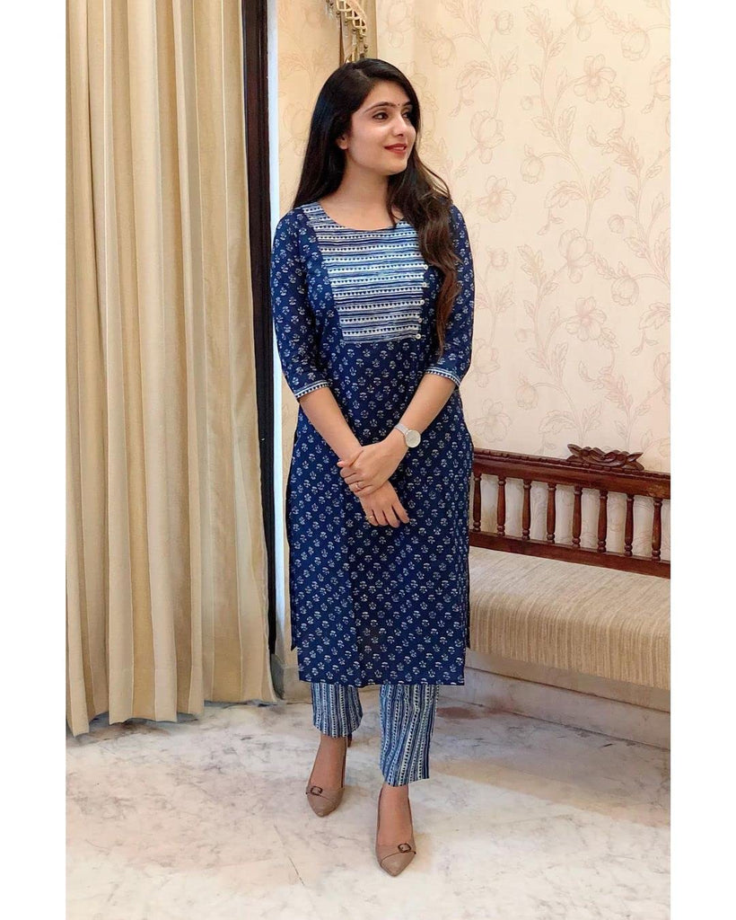 Descriptionanni Designer Women'S Cotton Blend Straight Printed Kurta With Pant Set (Tbh Blue_M_Blue_Medium)