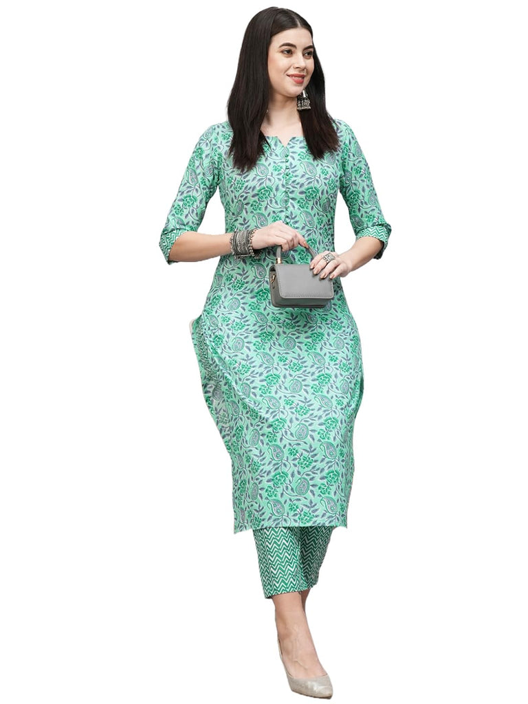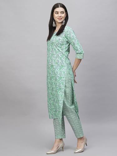 Descriptionanni Designer Women'S Cotton Blend Straight Printed Kurta With Pant (Lajvanti Green_S_Green_Small)