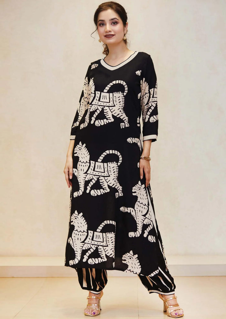 Anni Designer Women'S Cotton Blend Straight Printed Kurta With Pant (Lanka-Black-Nk_Xxl_Black_Xx-Large)