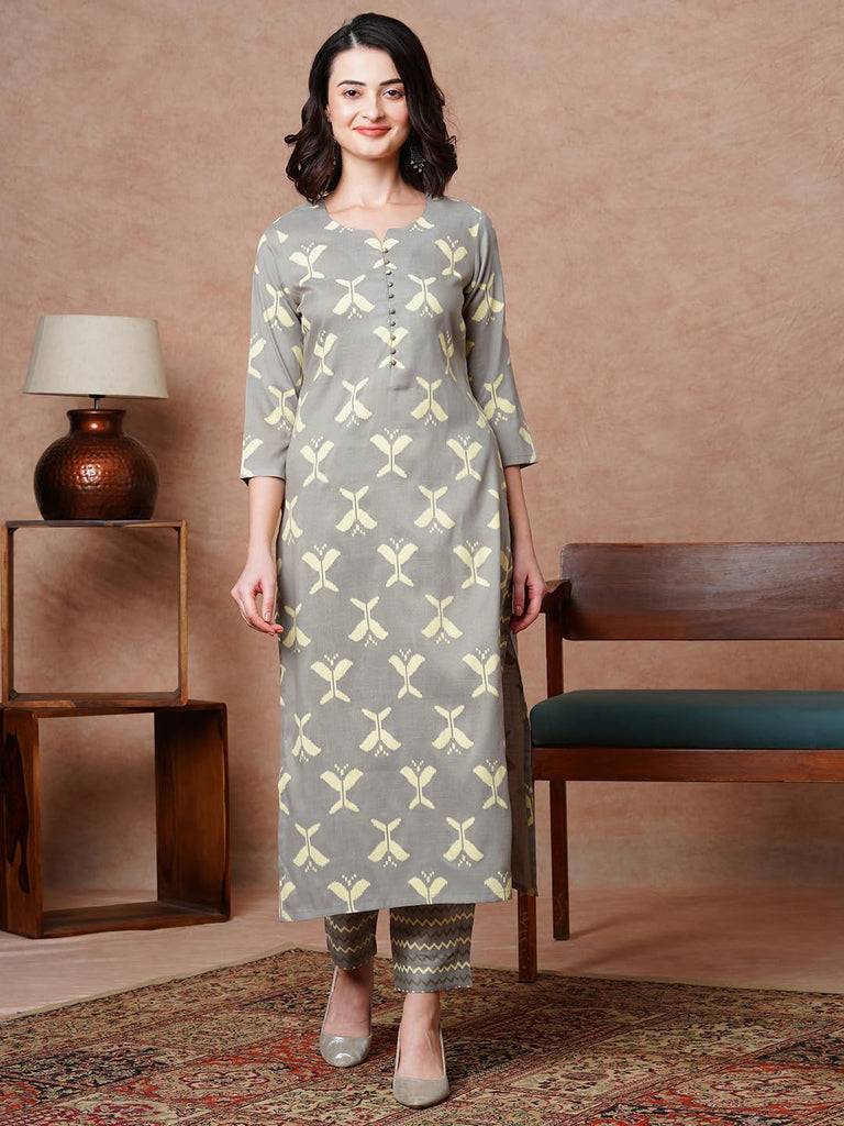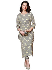 Anni Designer Women'S Cotton Blend Straight Printed Kurta With Pant (Naviba Grey_S_Grey_Small),Grey,S,,,