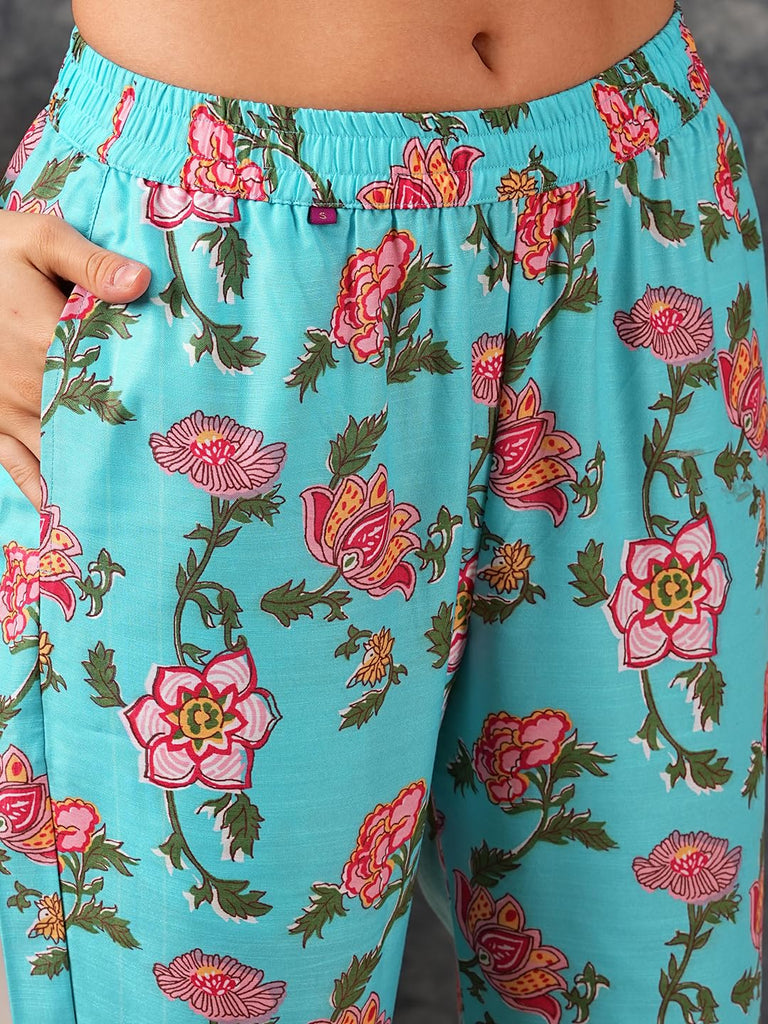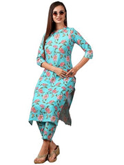 Anni Designer Women'S Cotton Blend Straight Printed Kurta With Pant (Nazuk Rama-Nw_Xl_Blue_X-Large),Blue,XL,,,
