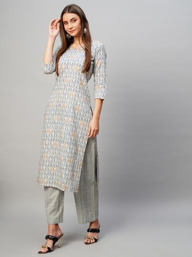 Descriptionanni Designer Women'S Cotton Blend Straight Printed Kurta With Pant (Pat 11 Pink_L_Pink_Large)