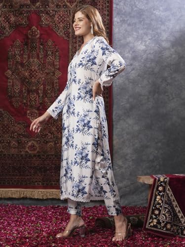 Anni Designer Women'S Cotton Blend Straight Printed Kurta With Pant (Pivar White_S_White_Small),White,S,Cotton Blend,Regular,