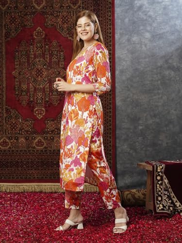 Anni Designer Women'S Cotton Blend Straight Printed Kurta With Pant (Samlok Pink_S_Pink_Small),Pink,S,Cotton Blend,Regular,