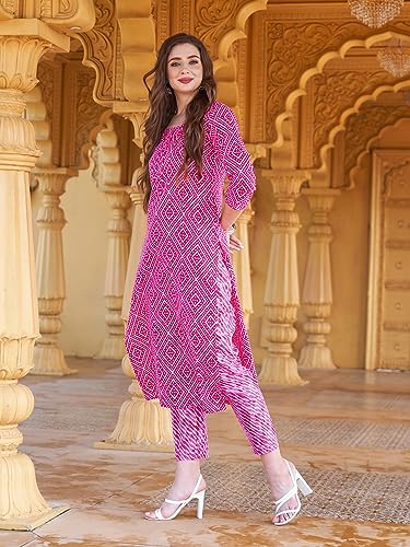 Descriptionanni Designer Women'S Cotton Blend Straight Printed Kurta With Pant Set (Logar Pink_3Xl_Pink_Xxx-Large)