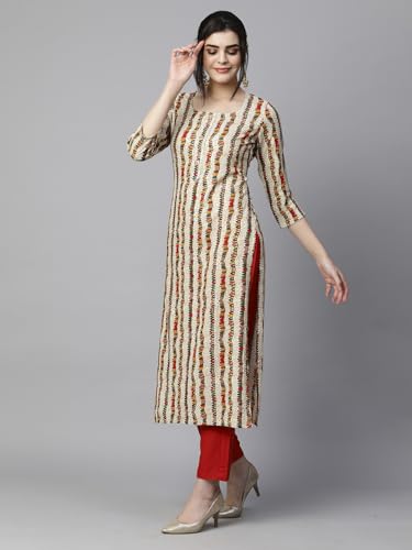 Anni Designer Women'S Cotton Blend Straight Printed Kurta With Pant Set (Parjapati Cream-Nw_L_Cream_Large),Cream,L,Cotton Blend,Regular,