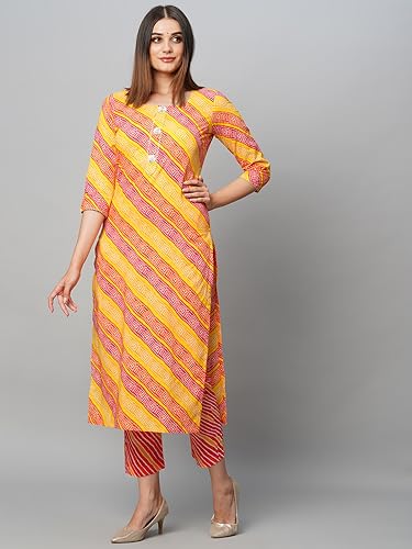 Descriptionanni Designer Women'S Cotton Blend Straight Printed Kurta With Pant Set (Sumali Green_L_Green_Large)