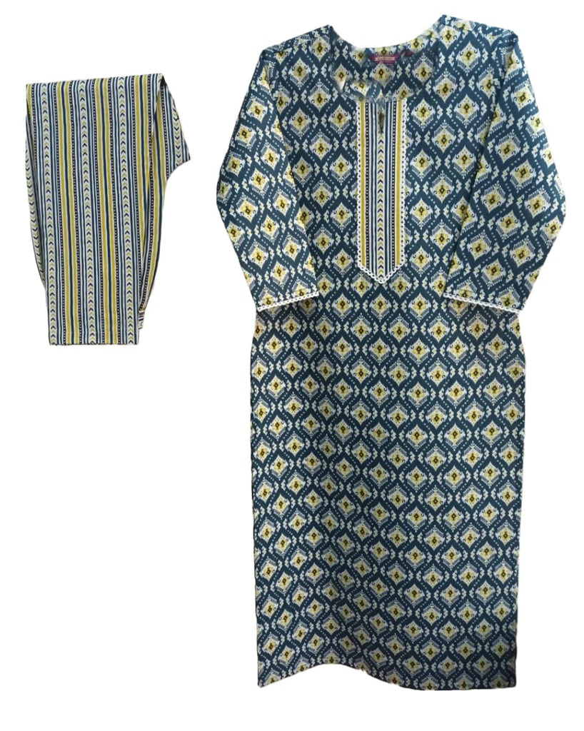 Descriptionanni Designer Women'S Cotton Blend Straight Printed Kurta With Pant Set (Tbh Blue-Nw_M_Blue_Medium)