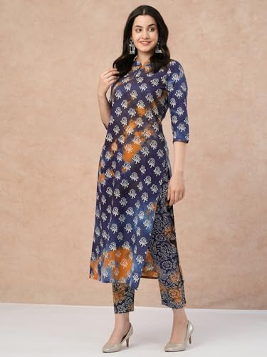 Descriptionanni Designer Women'S Cotton Blend Straight Printed Kurta With Pant (Sitana Blue_Xxl_Blue_Xx-Large)