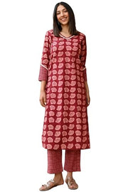 Anni Designer Women'S Cotton Blend Straight Printed Kurta With Pant (Vidula Maroon_L_Maroon_Large)