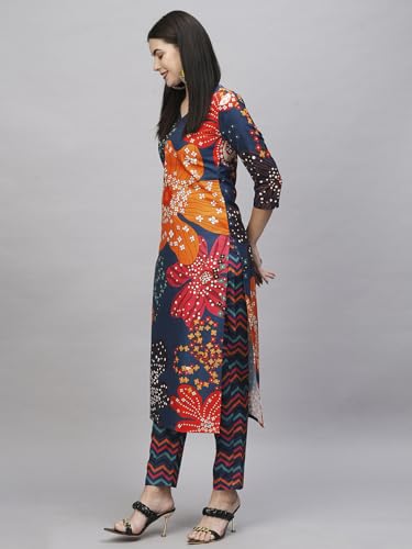 Anni Designer Women'S Cotton Blend Straight Printed Kurta With Pant (Wahida Blue_Xl_Blue_X-Large),Blue,XL,Cotton Blend,Wahida_1428,Kurta