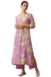 Anni Designer Women'S Cotton Blend Straight Printed Kurta With Pant (Wanda Purple_S_Purple_Small),Purple,S,Cotton Blend,Regular,