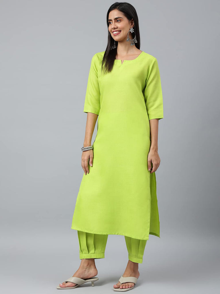 Anni Designer Women'S Cotton Blend Straight Solid Kurta With Pant & Dupatta (Jagu Green_S_Green_Small),Green,S,Cotton Blend,Straight,Dupatta