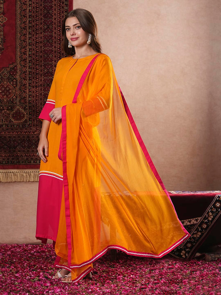 Anni Designer Women'S Cotton Blend Straight Solid Kurta With Pant & Dupatta (Panai Orange_Xxl_Orange_Xx-Large),Orange,2XL,Rayon Blend,Classic,