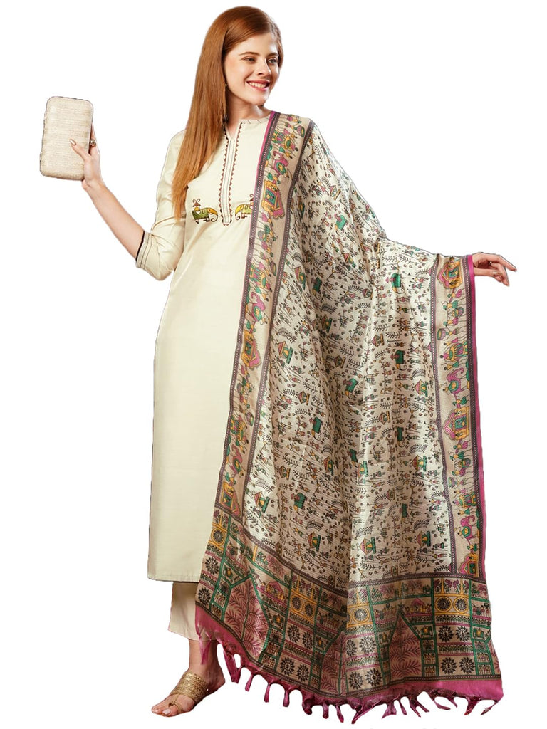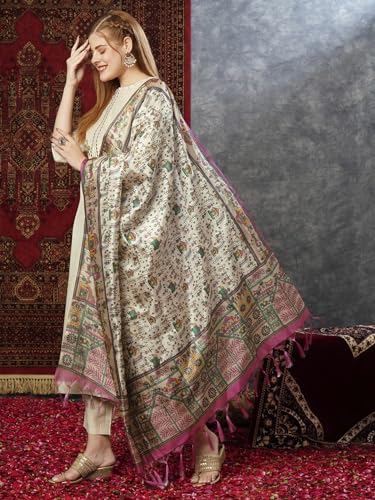 Anni Designer Women'S Cotton Blend Straight Solid Kurta With Pant & Dupatta (Savari Cream-Nw_Xxl_Cream_Xx-Large),Cream,2XL,Cotton Blend,Regular,