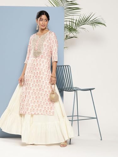 Descriptionanni Designer Women'S Cotton Blend Straight Yoke Design Printed Kurta (Chameli Peach-Nw_M_Peach_Medium)