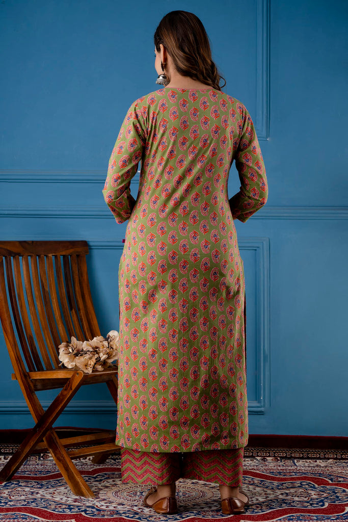 Descriptionanni Designer Women'S Cotton Blend Traditional Straight Printed Kurta And Palazzo Set (Bhadra Green Nw_Xxl_Green_Xx-Large)