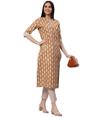 Anni Designer Women'S Cotton Blend Traditional Straight Printed Kurta And Pant Set (Danapa Mustard_M_Mustard_Medium),Mustard,M,Cotton Blend,Regular,Pants