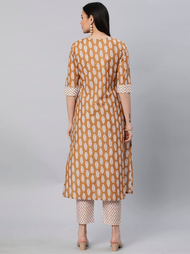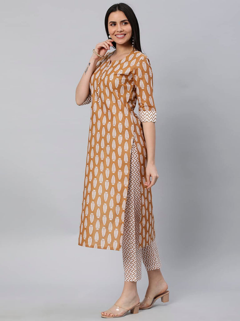 Anni Designer Women'S Cotton Blend Traditional Straight Printed Kurta And Pant Set (Danapa Mustard_S_Mustard_Small),Mustard,S,Cotton Blend,Regular,Pants