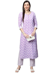 Anni Designer Women'S Cotton Blend Traditional Straight Printed Kurta And Pant Set (Danapa Purple_Xl_Purple_X-Large),Purple,XL,Cotton Blend,Regular,Pants