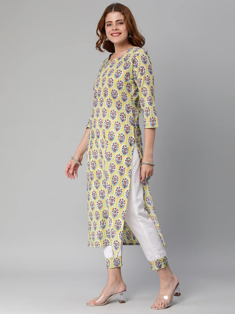 Anni Designer Women'S Cotton Blend Traditional Straight Printed Kurta With Pant Set (Who Green_Xl_Green_X-Large),Green,XL,Cotton Blend,Regular,Kurta