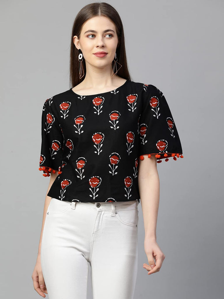 Descriptionanni Designer Women'S Cotton Regular Top (Tp-Cot-10165-Black_M_Black_Medium)