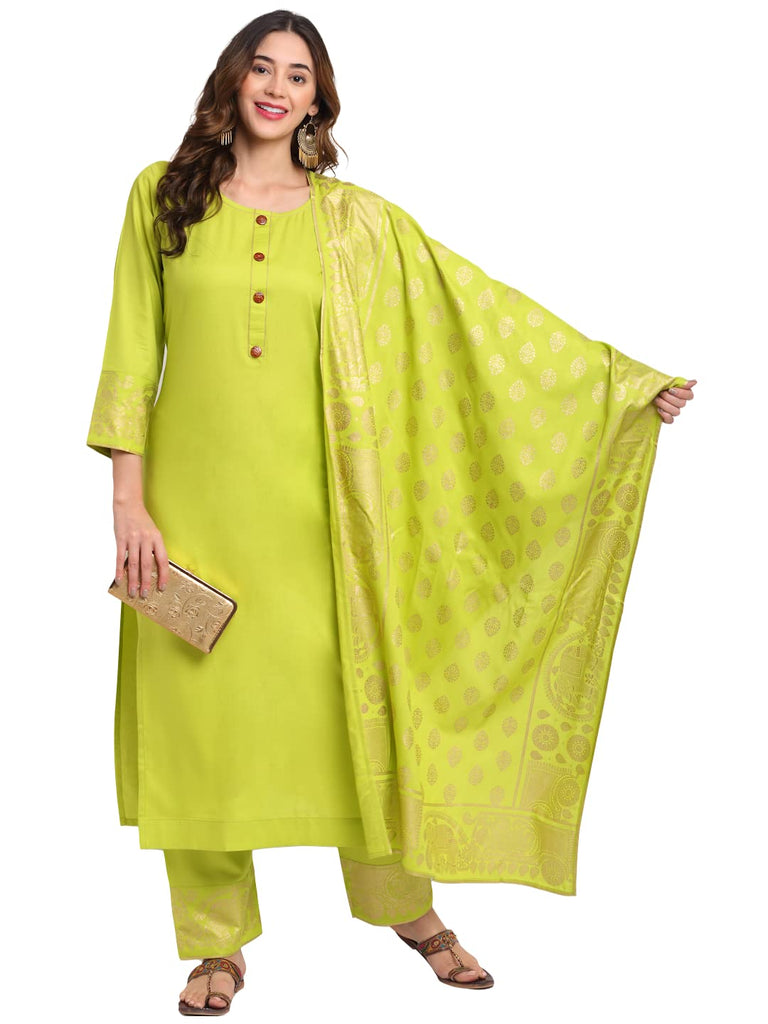 Descriptionanni Designer Women'S Cotton Straight Kurta With Palazzo & Dupatta (Kpzd-Cot-10036-Pink_S_Pink_Small)