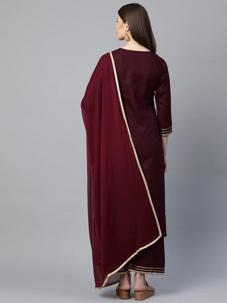 Anni Designer Women'S Cotton Straight Kurta With Palazzo & Dupatta (Kpzd-Cot-10127-Maroon_Xl_Maroon_X-Large),Maroon,XL,Cotton,Straight,Dupatta, Palazzo