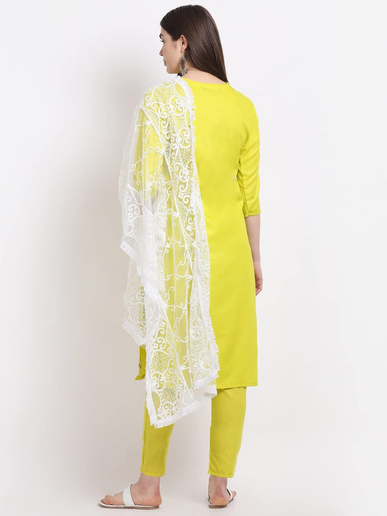 Anni Designer Women'S Cotton Straight Kurta With Pant & Dupatta (Kptd-Cot-10039-Yellow_L_Yellow_Large),Yellow,L,Cotton Blend,Straight,