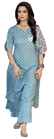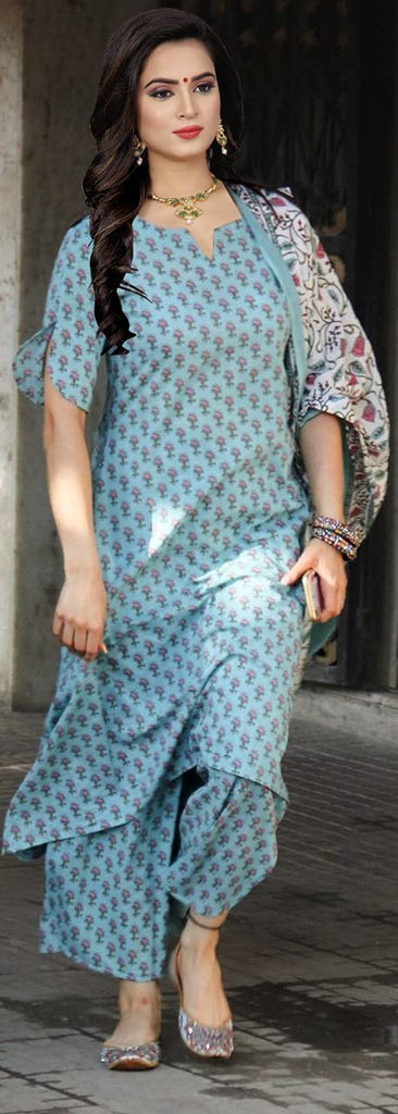 Anni Designer Women'S Cotton Straight Printed Kurta Palazzos And Dupatta (Blue S),Blue,S,Cotton Blend,Straight,Kurti, kurta, Dupatta