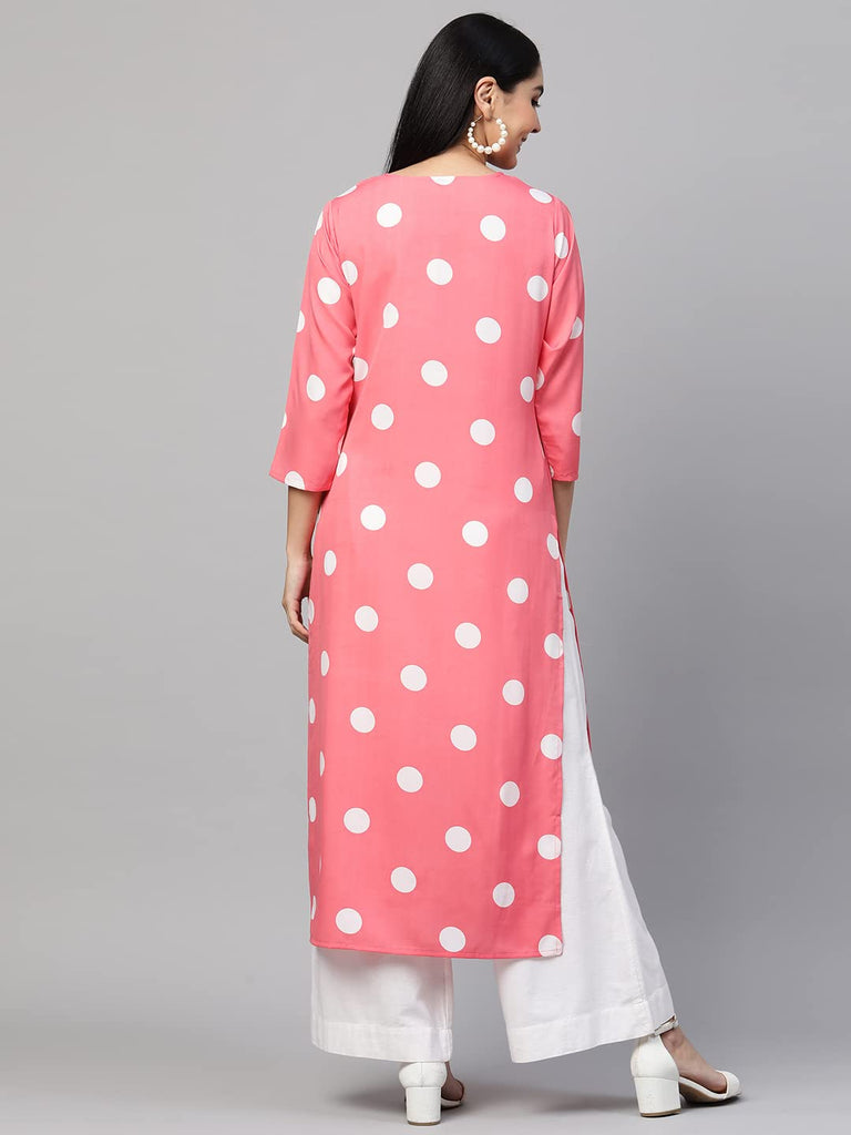 Anni Designer Women'S Crepe Straight Printed Kurta (Dots Peach_Xl_Peach_X-Large),Peach,XL,Crepe,Straight,kurta