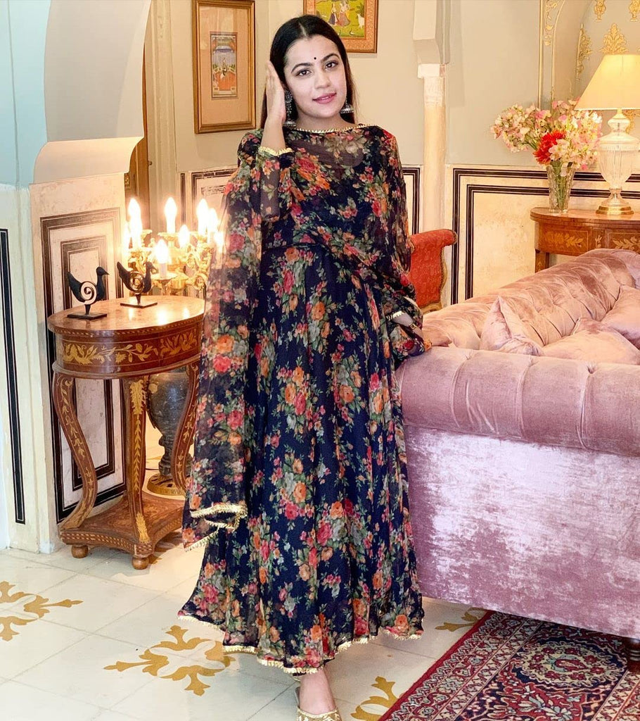 The ANNI DESIGNER Georgette Anarkali Kurta Set is made of georgette fabric, which is lightweight and flows beautifully.