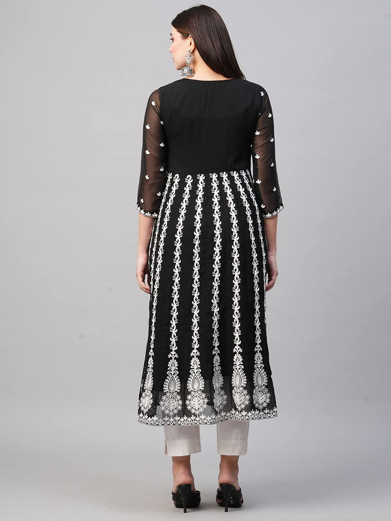 Anni Designer Women'S Georgette Chikankari Embroidered Anarkali Kurti (Naav Black-Nw2_M_Black_Medium),Black,M,Georgette,Anarkali,Kurti
